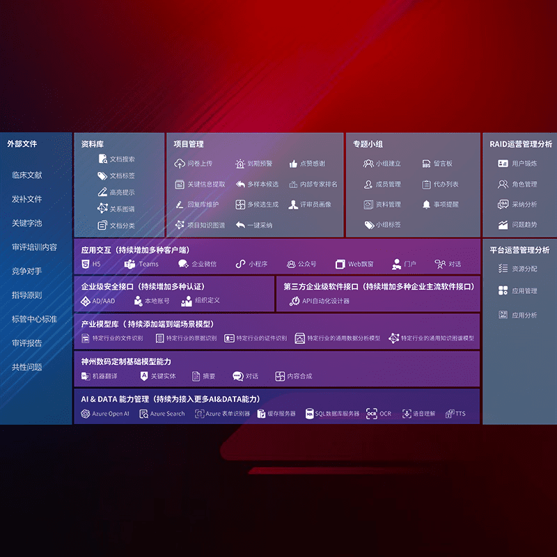 医疗器械产品上市前,,,,要熟悉严格与繁复评审标准,,,,整理分析监管机构指导文件中的海量信息。。。企业急需一个智能化解决方案,,,,提升知识管理效率,,,提高评审通过率,,,,以提升其市场竞争力。。
