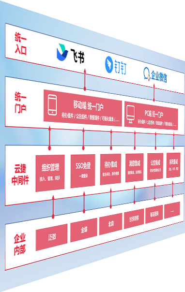 对协作平台提供支持服务,,,,支持企业应用与协作平台对接,,包含组织同步、、、、消息集成、、、、待办集成等。。。。支持目前主流的协作平台:钉钉、、、、企微和飞书。。。